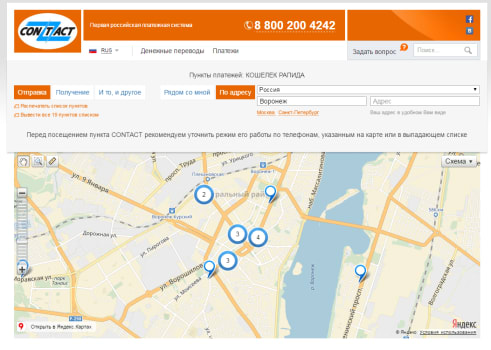 Сначала определимся с подходящим по местоположению пунктом денежных переводов CONTACT.