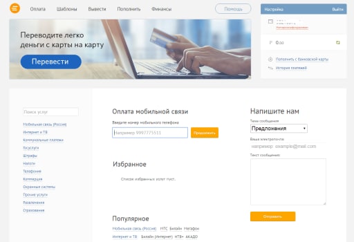 Для физлиц в рамках системы доступны услуги оплаты ЖКХ, мобильной связи, интернета, штрафов и многого другого. И в этом плане отставаний от конкурентов в лице Яндекс.Деньги и Webmoney по сути нет. Конечно, есть набор определённых нюансов, но основной пул возможностей Рапиды не выделяется в худшую сторону.